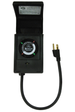 This reliable mechanical timer turns power on and off at selected intervals. Ideal for dawn-to-dusk type applications. Rain-tight enclosure, 115V - 15A receptacle.