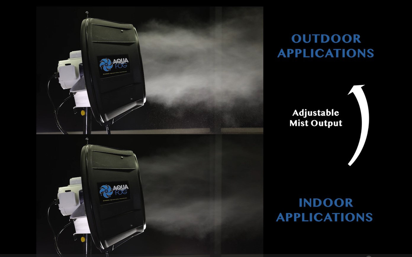 Unlike high-pressure misting systems, Jaybird centrifugal fogging units operate without clogging nozzles or high-pressure pumps, producing extremely fine fog droplets that evaporate quickly and efficiently for cooling and humidity control.
