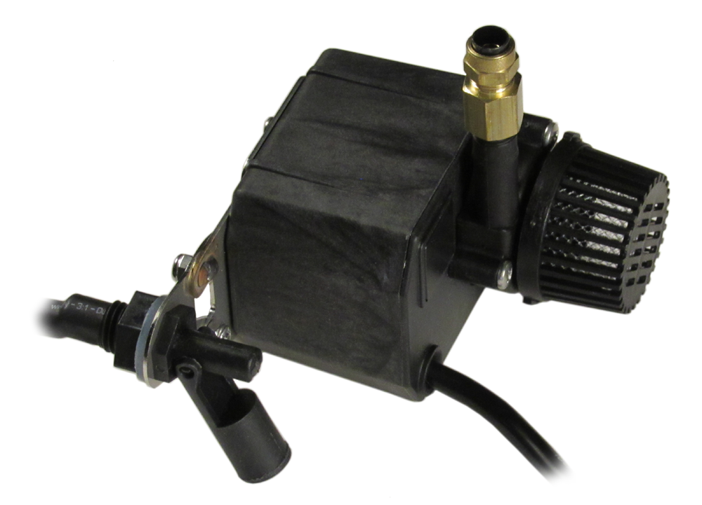 The ORSM uses an internal pump to deliver chemical solution from the tank to the fogging head. A built-in fluid level switch monitors the tank level and automatically shuts the system down in Auto Shut-off mode when the solution level becomes too low.