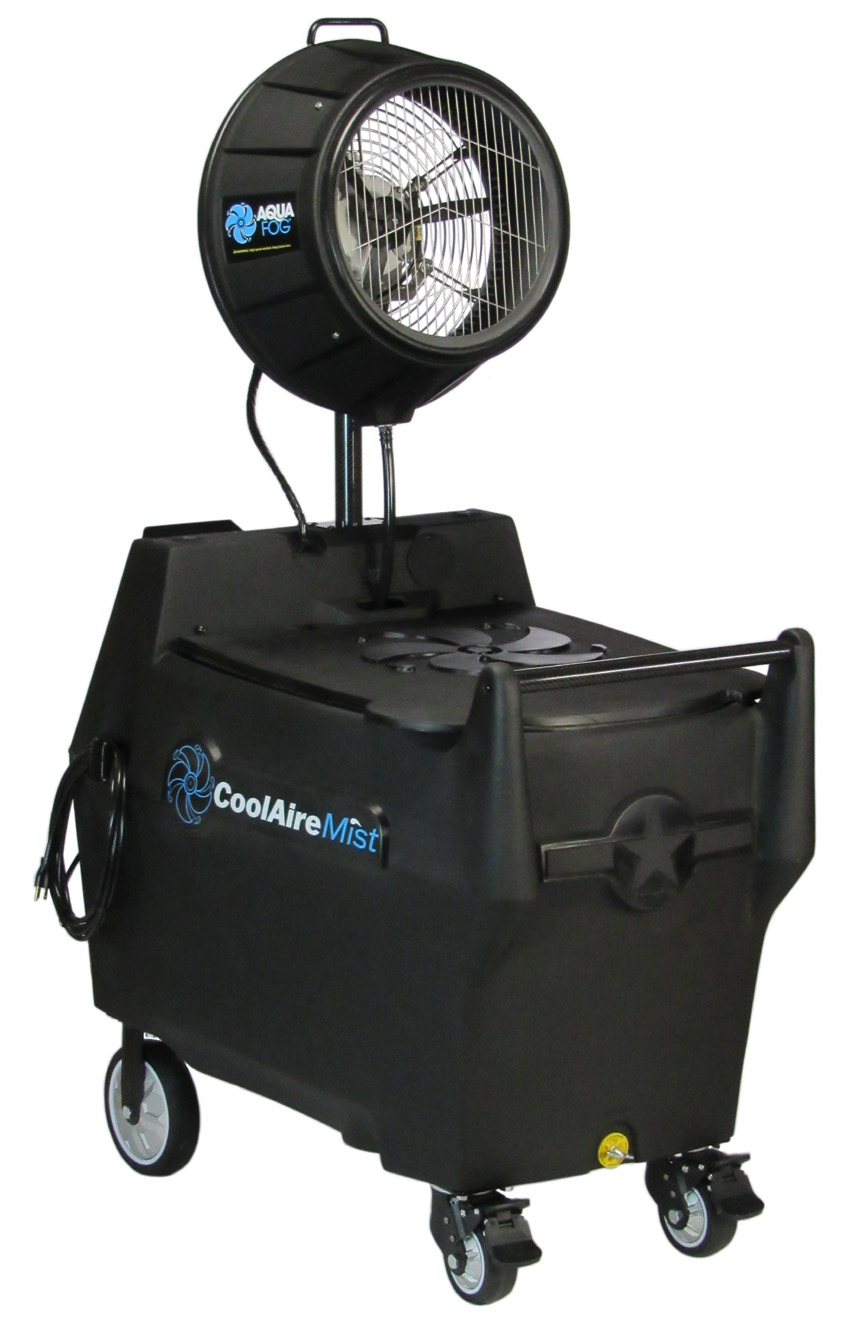 Reliable low-energy mist cooling helps reduce heat stress for horses, poultry, swine, and other livestock using ordinary water supplies and standard 115V power.