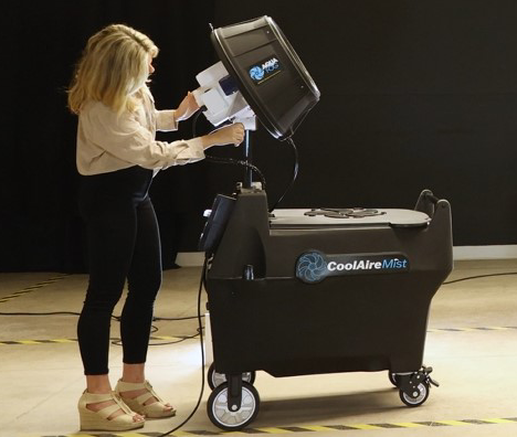 The CoolAire Spirit mobile fogging system provides portable evaporative cooling, humidification, and chemical fogging for manufacturing facilities, warehouses, industrial workspaces, and other environments where OSHA-compliant guarding and quieter airflow are preferred.