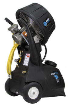 The HRSM-EXP includes an 18-gallon integrated supply tank, rugged wheeled chassis, and 4-position pivoting fogging head. Water flow is regulated by a quarter-turn ball valve and the system can be operated continuously or automated using a secondary hazardous-duty controller (where applicable).