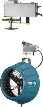 Ideal for interior applications and when hanging for permanent installation, consider the use of an Oscillator. The sweeping action of a fogging unit not only alleviates droplet collisions and fallout, but also enhances air circulation. The steady, continuous movement provides for uniform coverage patterns up to 70 feet in diameter. This allows the operator to fog at higher output levels than a stationary unit operating under equal conditions, resulting in less fallout and improved dryness underneath the fog pattern.